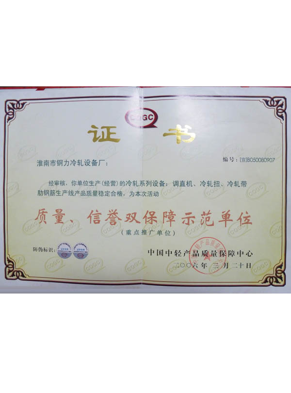 質量、信譽雙保障示范單位